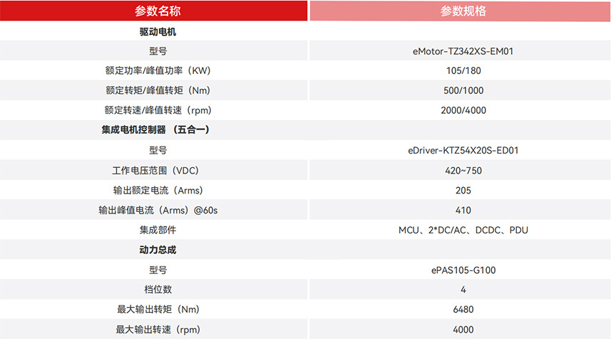 永磁同步电机+4AMT变速箱,调教优化,系统效率高至94%; 180 kW峰值功率、1000 Nm峰值扭矩,动力充沛; 动力优于同等级功率电机约8%